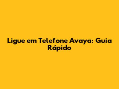 Ligue Em Telefone Avaya: Guia Rápido