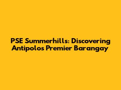 Hey guys! Ever heard of PSE Summerhills in Antipolo? It's not just a place; it's a vibrant community offering a blend of serene living and convenient access to city life. If you're considering a move or just curious, let's dive into what makes PSE Summerhills a standout barangay in Antipolo.