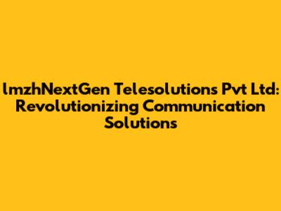 In today's fast-paced business environment, effective communication is the cornerstone of success. lmzhNextGen Telesolutions Pvt Ltd emerges as a pivotal player, offering innovative and tailored telesolutions designed to meet the evolving needs of modern enterprises. But what exactly sets lmzhNextGen apart, and how can its services transform your business communications? Let's dive deep into the world of lmzhNextGen Telesolutions and explore its impact on the industry.
