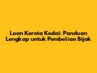Loan Kereta Kedai: Panduan Lengkap Untuk Pembelian Bijak