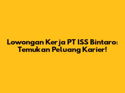 Lowongan Kerja PT ISS Bintaro: Temukan Peluang Karier!