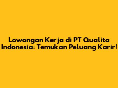 Lowongan Kerja PT Qualita Indonesia: Temukan Peluang Karir!