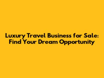 Luxury Travel Business For Sale: Find Your Dream Opportunity