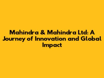 Hey guys! Ever wondered about the story behind those rugged SUVs and tractors you often see? Let's dive into the fascinating world of Mahindra & Mahindra Ltd, a true powerhouse in the Indian automotive and farm equipment industry. This isn't just about cars and tractors; it’s about a legacy of innovation, resilience, and global impact. Buckle up, because we're about to explore the rich history, groundbreaking innovations, and the significant role this company plays in shaping the future of mobility and agriculture.
