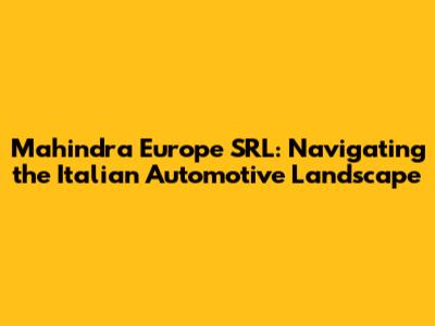 Mahindra Europe SRL: A Deep Dive Into Italy's Automotive Presence