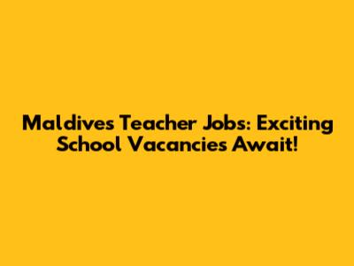 Maldives Teacher Jobs: Exciting School Vacancies Await!
