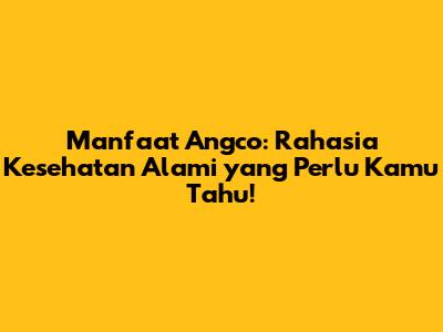 Manfaat Angco: Rahasia Kesehatan Alami Yang Perlu Kamu Tahu!