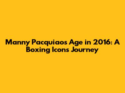 So, what was Manny Pacquiao's age in 2016? Born on December 17, 1978, Manny was 37 years old throughout most of 2016. Can you believe it? At that age, many boxers are either retired or winding down their careers. But not Manny! He was still very much in the game, competing at the highest level and captivating audiences worldwide. This makes his continued success all the more remarkable, doesn't it? He proved that age is just a number. It's truly amazing to see how he could still go toe-to-toe with younger, more seasoned fighters. Manny's dedication to his craft, his rigorous training regimen, and his sheer love for the sport were all key factors in his enduring success. He consistently pushed himself to the limit, showcasing incredible speed, power, and ring IQ. This level of commitment is truly inspiring and is a lesson for us all, regardless of age.