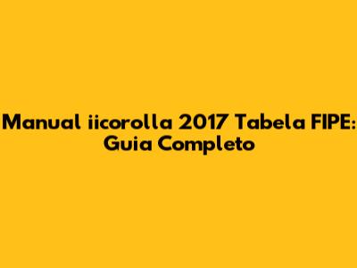 Manual Iicorolla 2017 Tabela FIPE: Guia Completo