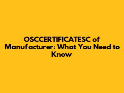 Manufacturer OSCCERTIFICATESC: What You Need To Know