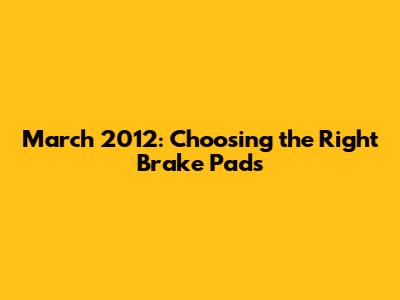 March 2012: Choosing The Right Brake Pads