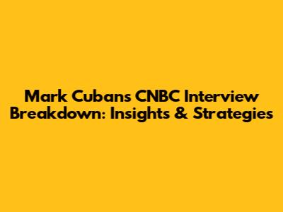 Mark Cuban's CNBC Interview Breakdown: Insights & Strategies