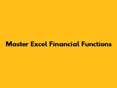 Master Excel Financial Functions