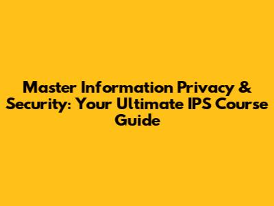 Master Information Privacy & Security: IPS Course Guide