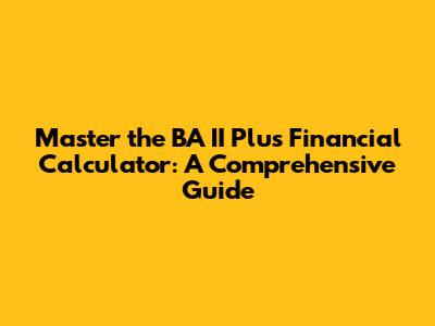 Master The BA II Plus Financial Calculator: A Comprehensive Guide