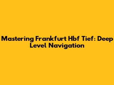 Mastering Frankfurt Hbf Tief: Deep Level Navigation