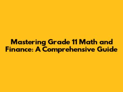 Mastering Grade 11 Math And Finance: A Comprehensive Guide