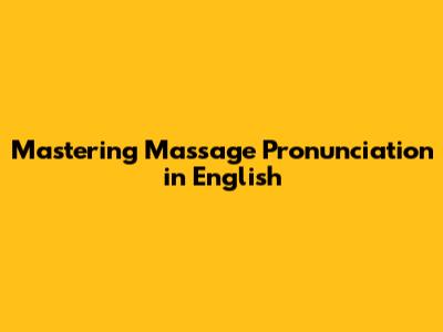 Mastering 'Massage' Pronunciation In English