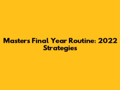 Master's Final Year Routine: 2022 Strategies