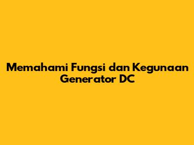Apa Itu Generator DC?