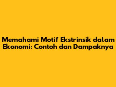 Motif ekstrinsik adalah kekuatan pendorong yang berasal dari faktor luar atau imbalan eksternal. Dalam konteks ekonomi, ini mengacu pada motivasi yang mendorong individu untuk terlibat dalam kegiatan ekonomi berdasarkan imbalan seperti uang, pengakuan, atau menghindari hukuman. Mari kita bedah lebih dalam mengenai contoh motif ekstrinsik dalam ekonomi, serta bagaimana mereka membentuk perilaku dan keputusan kita.