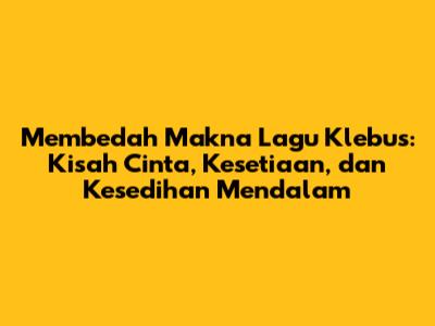 Semoga artikel ini memberikan pemahaman yang lebih dalam tentang makna di balik lagu "Klebus". Jangan ragu untuk terus mendengarkan lagu ini dan merenungkan pesan-pesan yang terkandung di dalamnya. Siapa tahu, lagu Klebus bisa menjadi teman setia bagi kamu yang sedang merasakan kesedihan, kerinduan, atau bahkan sedang mencari inspirasi.