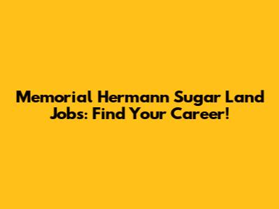 Memorial Hermann Sugar Land Jobs: Find Your Career!
