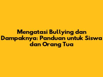 Bullying adalah masalah kompleks yang membutuhkan upaya bersama dari siswa, orang tua, guru, dan komunitas sekolah. Dengan memahami apa itu bullying, dampaknya, dan bagaimana cara mengatasinya, kita dapat menciptakan lingkungan yang aman dan mendukung bagi semua siswa. Mari kita bekerja sama untuk menghentikan bullying dan membangun sekolah yang lebih baik.