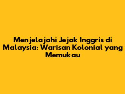 Menjelajahi Jejak Inggris Di Malaysia: Warisan Kolonial Yang Memukau