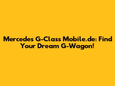 Mercedes G-Class Mobile.de: Find Your Dream G-Wagon!
