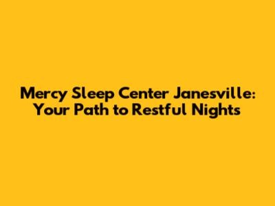 Mercy Sleep Center Janesville: Your Guide To Better Sleep
