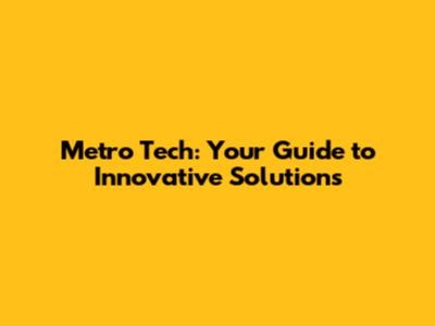 Metro Tech: Your Guide To Innovative Solutions