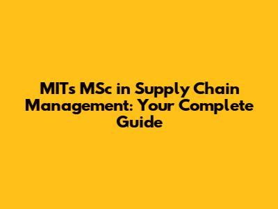 MIT's MSc In Supply Chain Management: Your Complete Guide