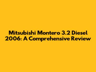 Mitsubishi Montero 3.2 Diesel 2006: A Comprehensive Review