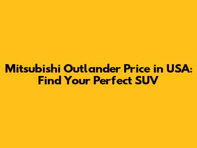 Mitsubishi Outlander Price In USA: Find Your Perfect SUV