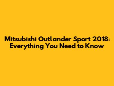 Mitsubishi Outlander Sport 2018: A Comprehensive Overview
