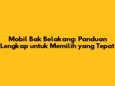 Mobil Bak Belakang: Panduan Lengkap Untuk Memilih Yang Tepat