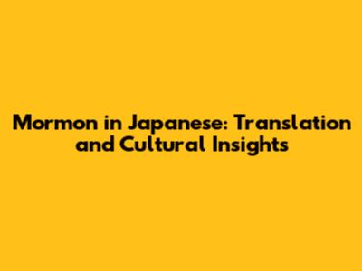 Mormon In Japanese: Translation And Cultural Insights