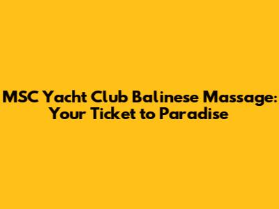 Hey guys! Ever dreamed of a vacation where luxury meets relaxation? Picture this: you're sailing the high seas aboard an MSC Yacht Club ship, and you're about to experience a Balinese massage, the kind that melts away stress and leaves you feeling like a whole new person. Sounds amazing, right? Well, that's exactly what awaits you! In this article, we'll dive deep into the world of the MSC Yacht Club Balinese massage, exploring everything from what it is, where to find it, what to expect, and why it's a must-try experience. So, buckle up, grab a comfy seat, and let's get started on this journey to pure bliss! We will explore the details about the massage and why it is a great experience in the cruise. This article will help you decide to try the treatment and you will have a better understanding of the value.