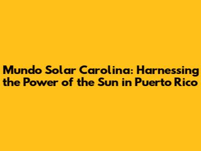 Mundo Solar Carolina: Your Guide To Solar Power