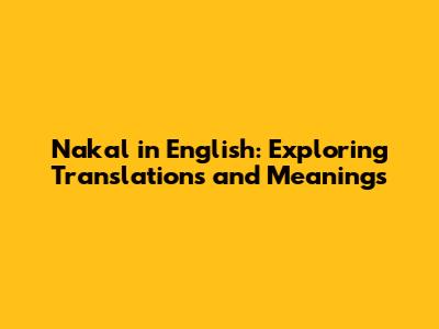 Nakal In English: Exploring Translations And Meanings