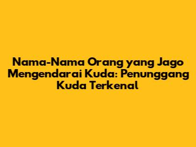 Orang yang mengendarai kuda atau penunggang kuda, telah memainkan peran penting dalam sejarah manusia. Sejak zaman kuno, kuda telah menjadi sahabat setia manusia, membantu dalam perjalanan, pertempuran, dan pertanian. Dalam artikel ini, kita akan menjelajahi dunia penunggang kuda, mengungkap nama-nama terkenal yang telah meninggalkan jejak abadi dalam sejarah berkuda. Mari kita selami lebih dalam tentang penunggang kuda yang mengagumkan ini, yang keterampilan dan keberaniannya telah menginspirasi banyak orang.