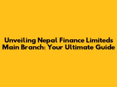 Unveiling Nepal Finance Limited's Main Branch: Your Ultimate Guide