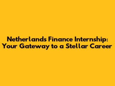 Netherlands Finance Internship: Your Gateway To A Stellar Career