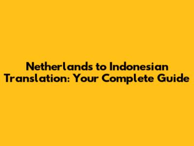 Netherlands To Indonesian Translation: Your Complete Guide
