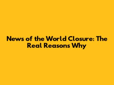 News Of The World Closure: The Real Reasons Why