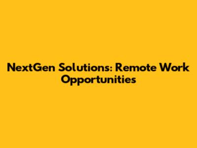 NextGen Solutions: Remote Work Opportunities