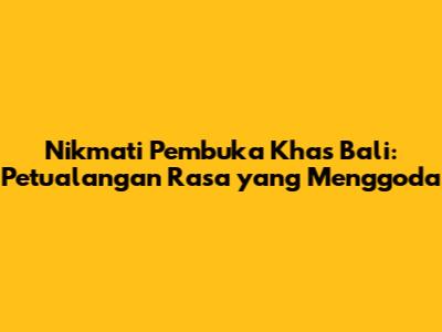 Nikmati Pembuka Khas Bali: Petualangan Rasa Yang Menggoda