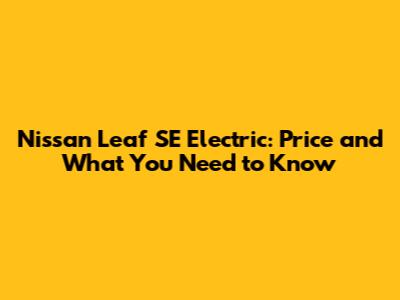 Nissan Leaf SE Electric: Price And What You Need To Know