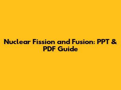 Nuclear Fission And Fusion: PPT & PDF Guide